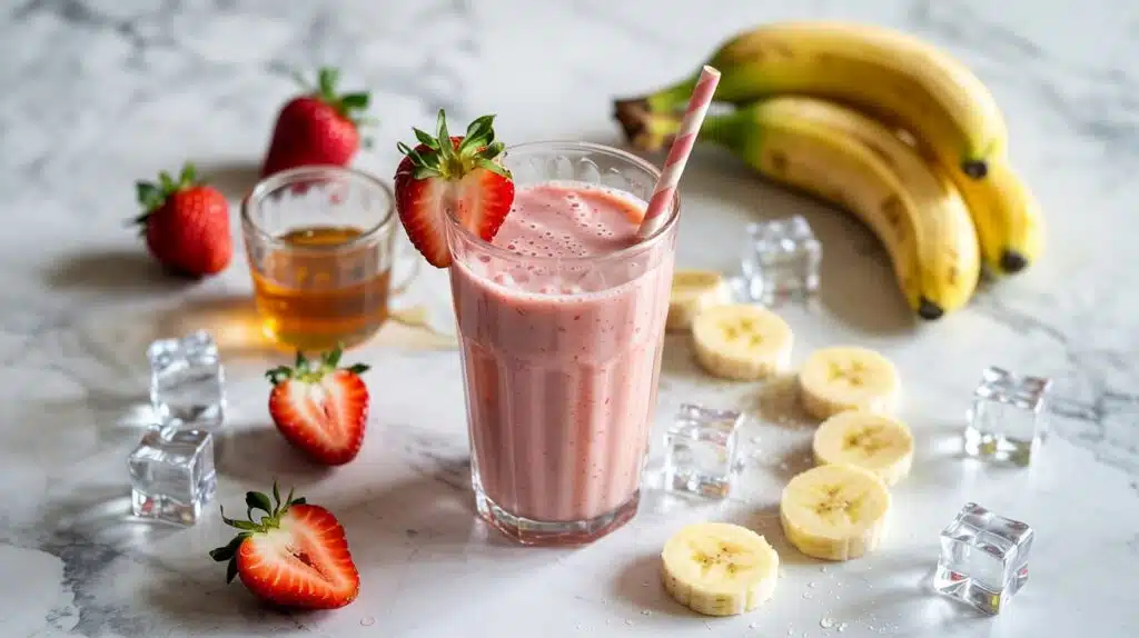- 1 cup frozen strawberries – Washed, hulled, and frozen for a chill and vibrant flavor.