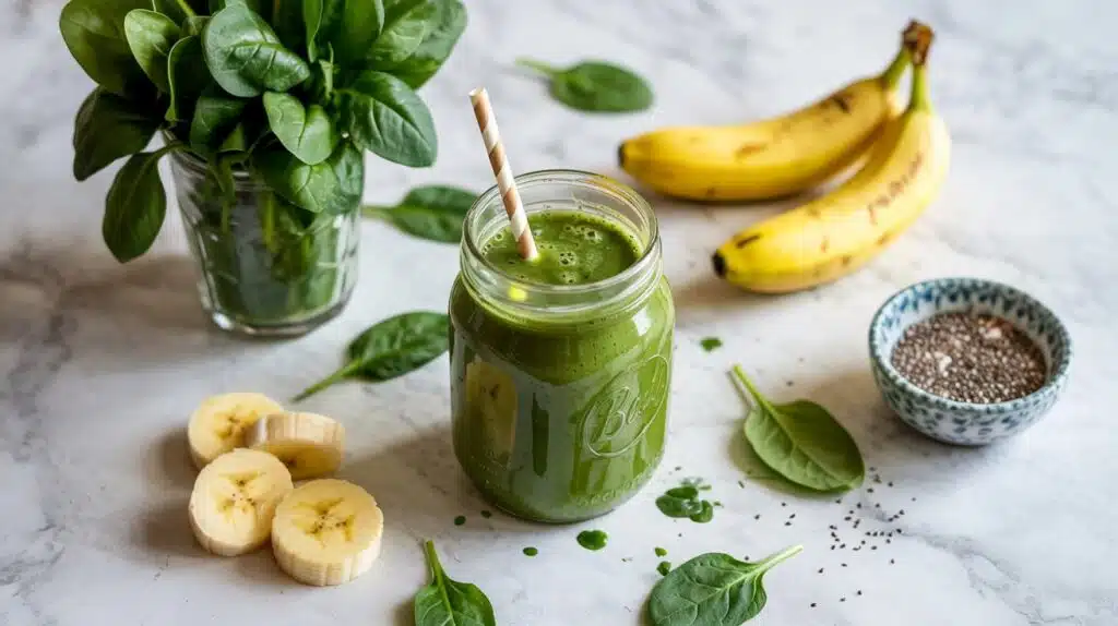 - Flavor balance – Natural sweetness from banana pairs nicely with the earthy spinach and mild almond milk.