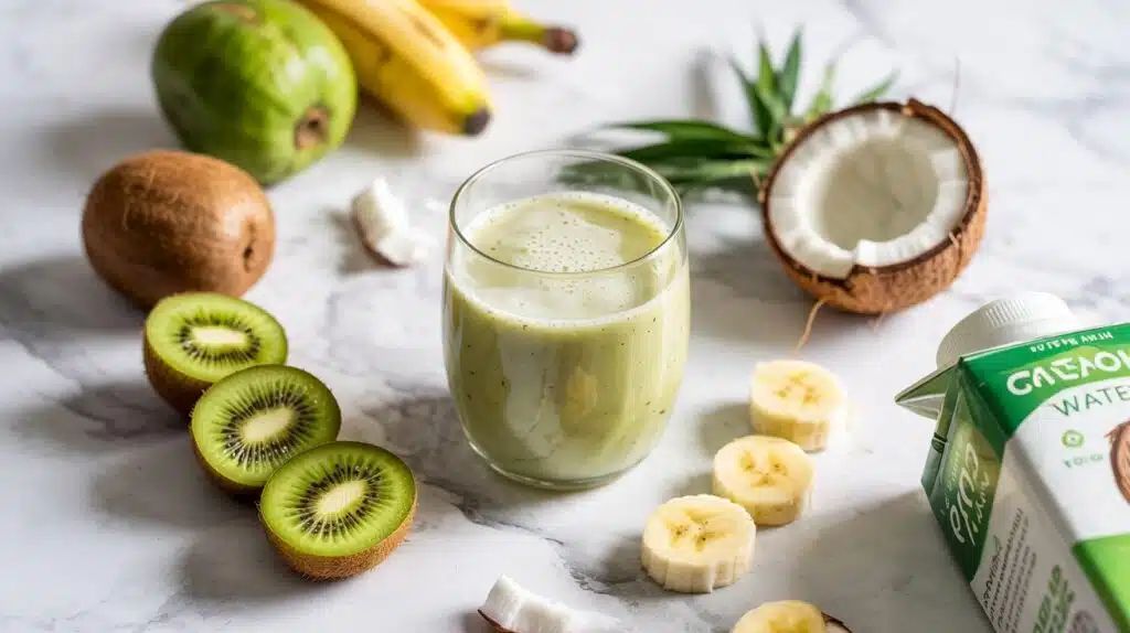 - 1 cup coconut water – provides light hydration and mild sweetness.